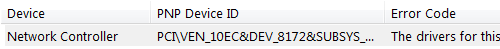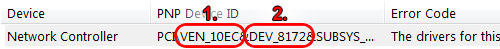 En este ejemplo, el Id. de fabricante (VEN_xxxx) es "10EC" y el Id. de dispositivo (DEV_xxxx) es "8172".
