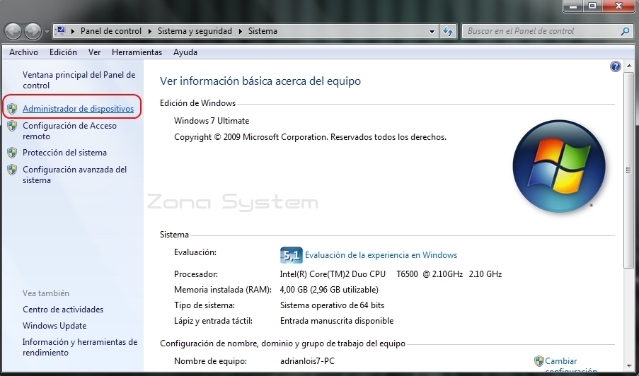 De este modo accederemos a la ventana de propiedades e información del sistema.