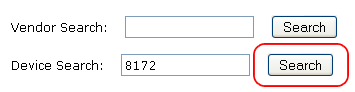 Escribimos el Id. de dispositivo a identificar en el campo Device Search. En nuestro ejemplo, se trata de "8172" y pulsamos en el botón "Search" para obtener la información del dispositivo.