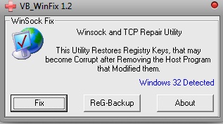 - WinSock XP Fix, es una herramienta gratuíta, portable y fácil de usar, sólo la ejecutamos y presionamos el botón: "Fix" y listo, pero si deseas hacer un respaldo de tu registro de Windows lo puedes hacer antes presionando el botón "ReG-Backup".